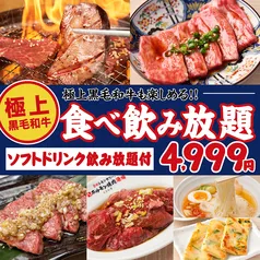 極上黒毛和牛を贅沢に食べ放題で味わえる♪上品な香りととろける食感「黒毛和牛 上カルビ」や人気の「ときわ亭牛タン」まで思う存分堪能できる、ときわ亭の贅を尽くした特別コースをご賞味あれ!★こちらのコースはソフトドリンク飲み放題が無料で付きます。今なら+550円で「0秒レモンサワー飲み放題」飲み放題追加OK!!