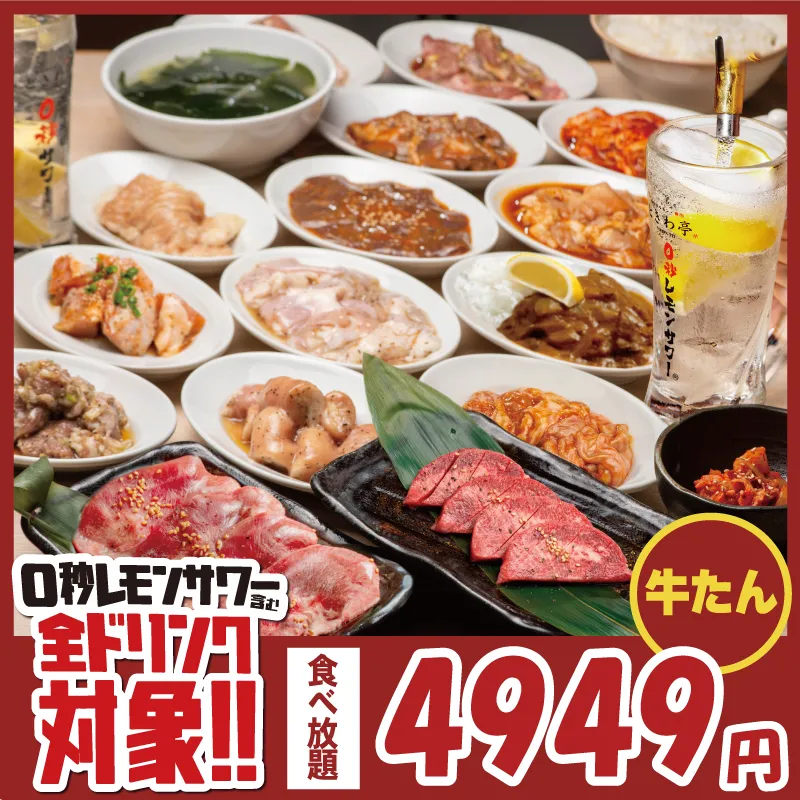 【遅割】21時以降の来店でお得に食べ放題♪ 酒・料理が足りないなどの心配無用!鬼コスパの食べ飲み放題プランをご用意致しました! なんと驚愕の2749円!お試しにも◎ 更に生ビールやハイボール、チャミスル、0秒レモンサワーまで全種類飲み放題付き♪ ※食べ放題・飲み放題60分制/お席90分制(フードL.O.23:00/ドリンクL.O.23:30) ★お子様料金:小学生1650円・幼児無料