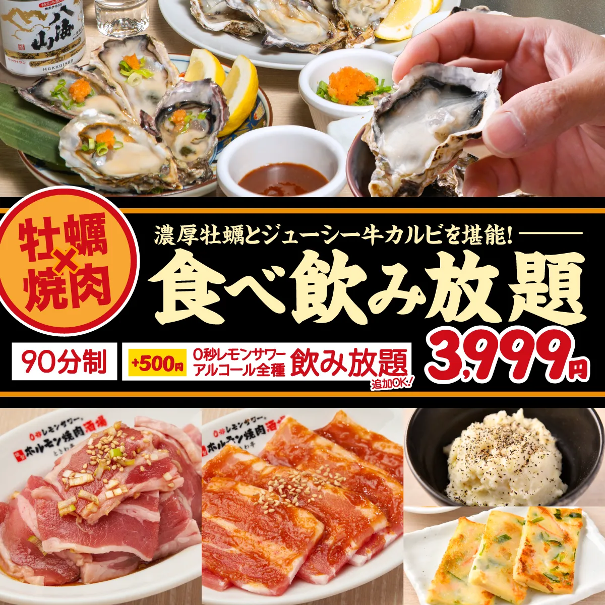 【牡蠣&カルビ食べ放題コース】濃厚牡蠣と絶品牛カルビを堪能!90分3999円(税込4399円)