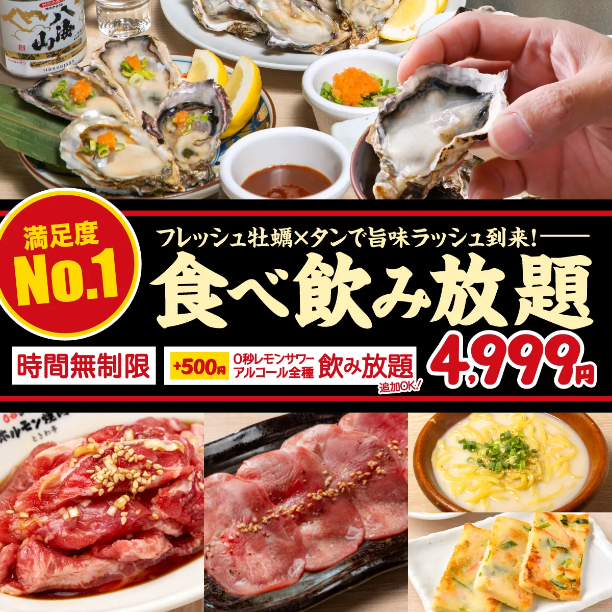 ★満足度No1★【牡蠣&タン食べ放題コース】牡蠣×名物焼肉で旨さラッシュ到来!時間無制限4999円(税込5499円)