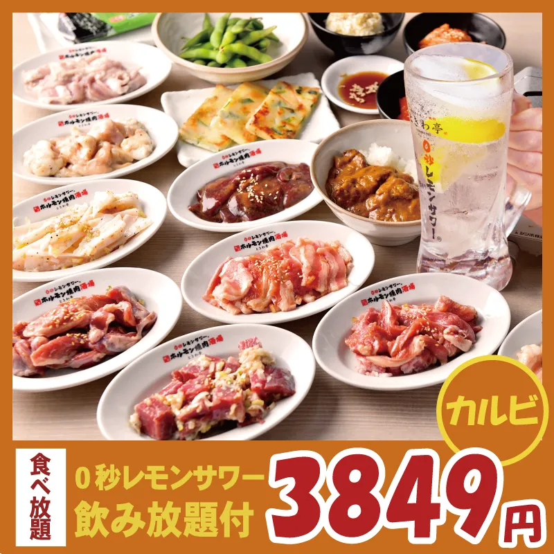 鬼コスパ!【カルビ食べ飲み放題コース】0秒レモンサワー含む28種飲み放題付!90分3849円