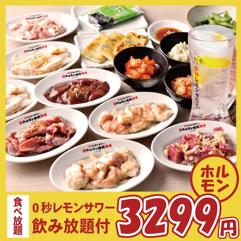【仙台流ときわ亭ホルモン食べ飲み放題コース】0秒レモンサワー含む28種飲み放題付!90分3299円
