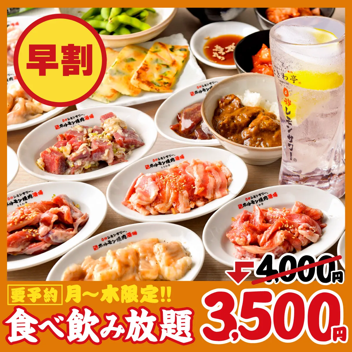 詳細・予約★早割★【仙台流 ときわ亭ホルモン食べ放題&飲み放題コース】90分3000円(税込3300円)⇒2500円(税込2750円)/月~木