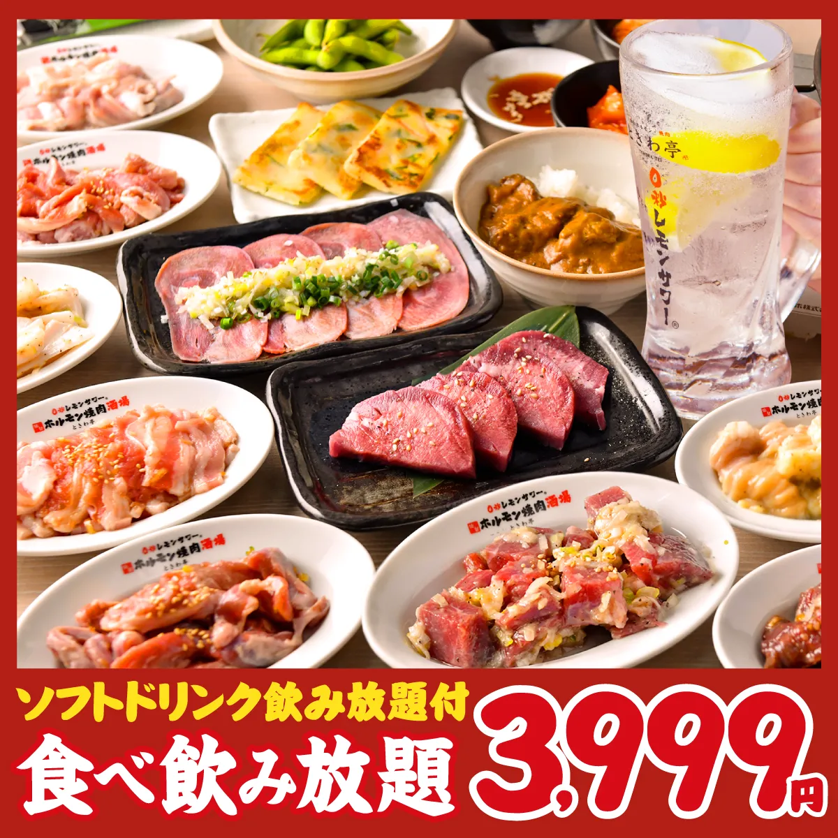 「酒・料理が足りない!」などの心配無用!ときわ亭名物 塩ホルモン・焼肉・サイドメニューまで全部食べ放題!さらにソフトドリンク飲み放題も付いて、驚愕の⇒2,499円と鬼コスパ♪今なら+500円で「0秒レモンサワー飲み放題」&アルコール飲み放題も追加OK!