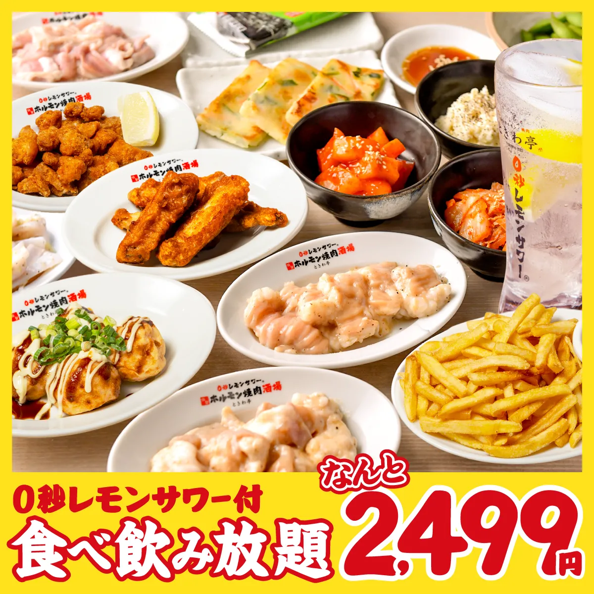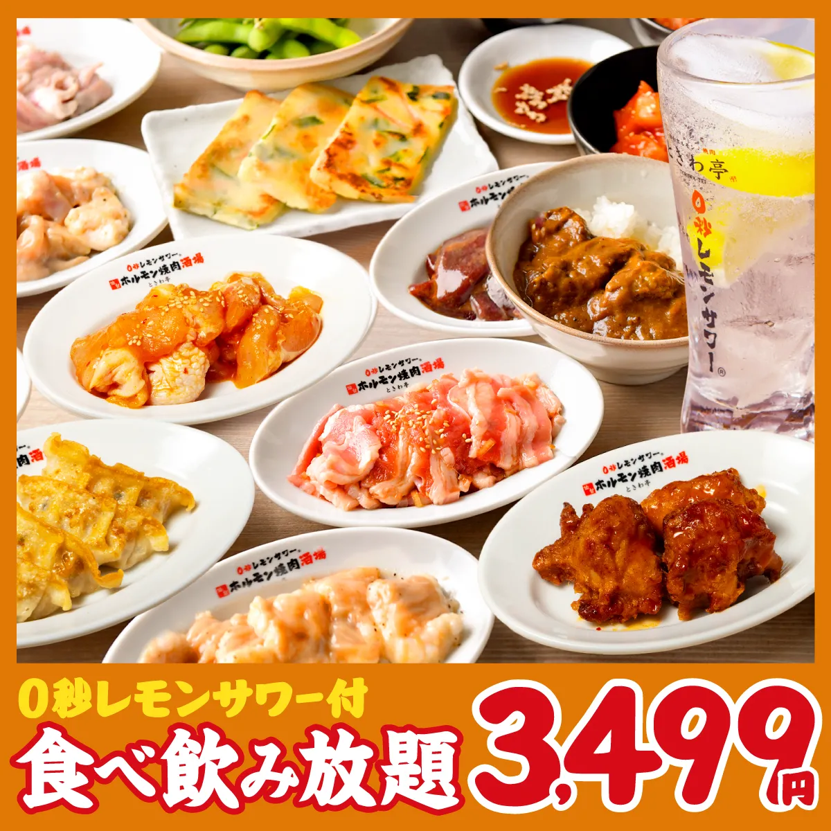 「酒・料理が足りない!」などの心配無用!ときわ亭名物 塩ホルモン・焼肉・サイドメニューまで全部食べ放題!さらに「0秒レモンサワー飲み放題」も付いて、驚愕の⇒2,499円と鬼コスパ♪