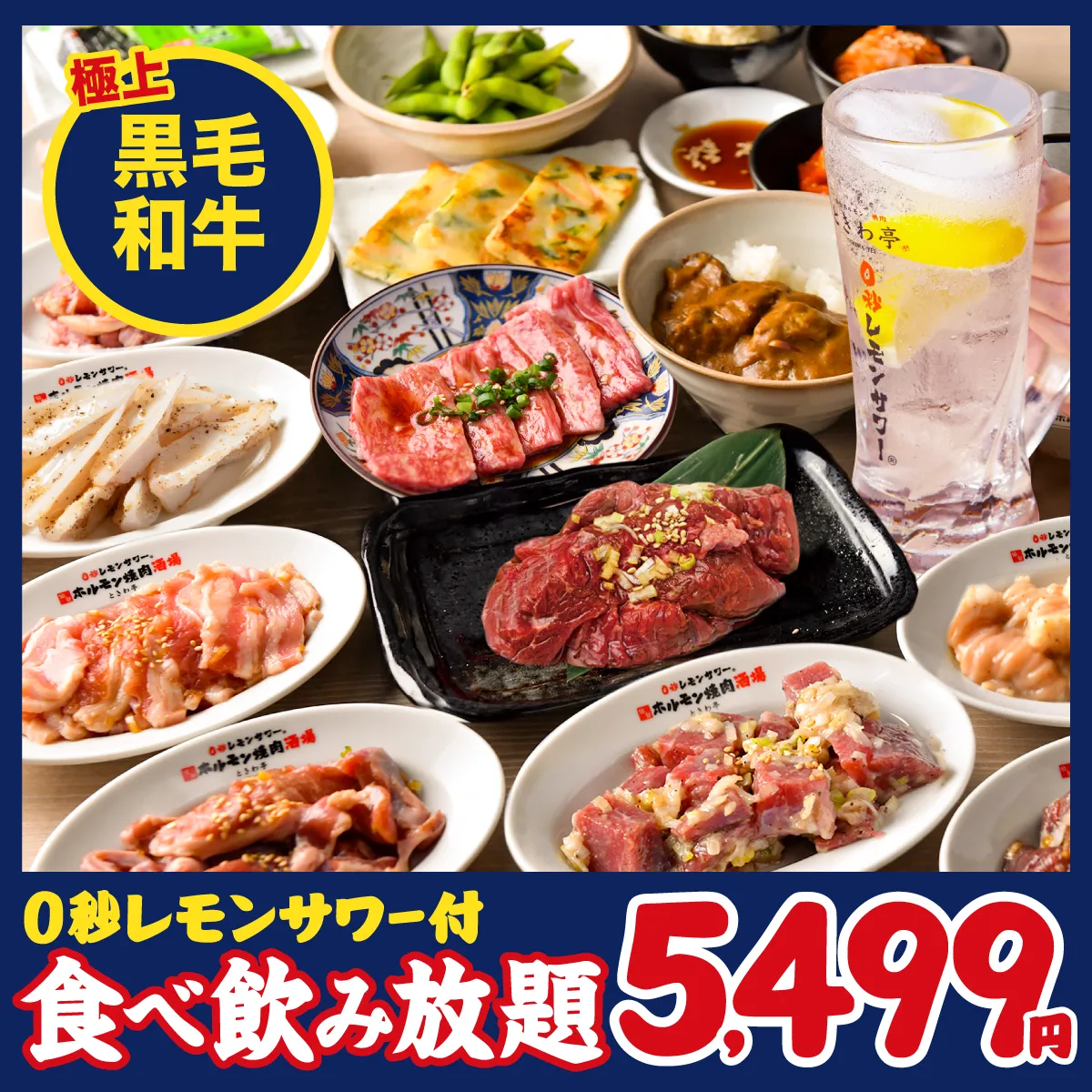 なんと「極上 黒毛和牛」が食べ放題で味わえる至福のプラン!ハイクオリティな和牛の旨みを、心ゆくまでご堪能いただけます。今ならときわ亭名物「0秒レモンサワー飲み放題」もセットになった、まさに究極の食べ放題&飲み放題プランです。
