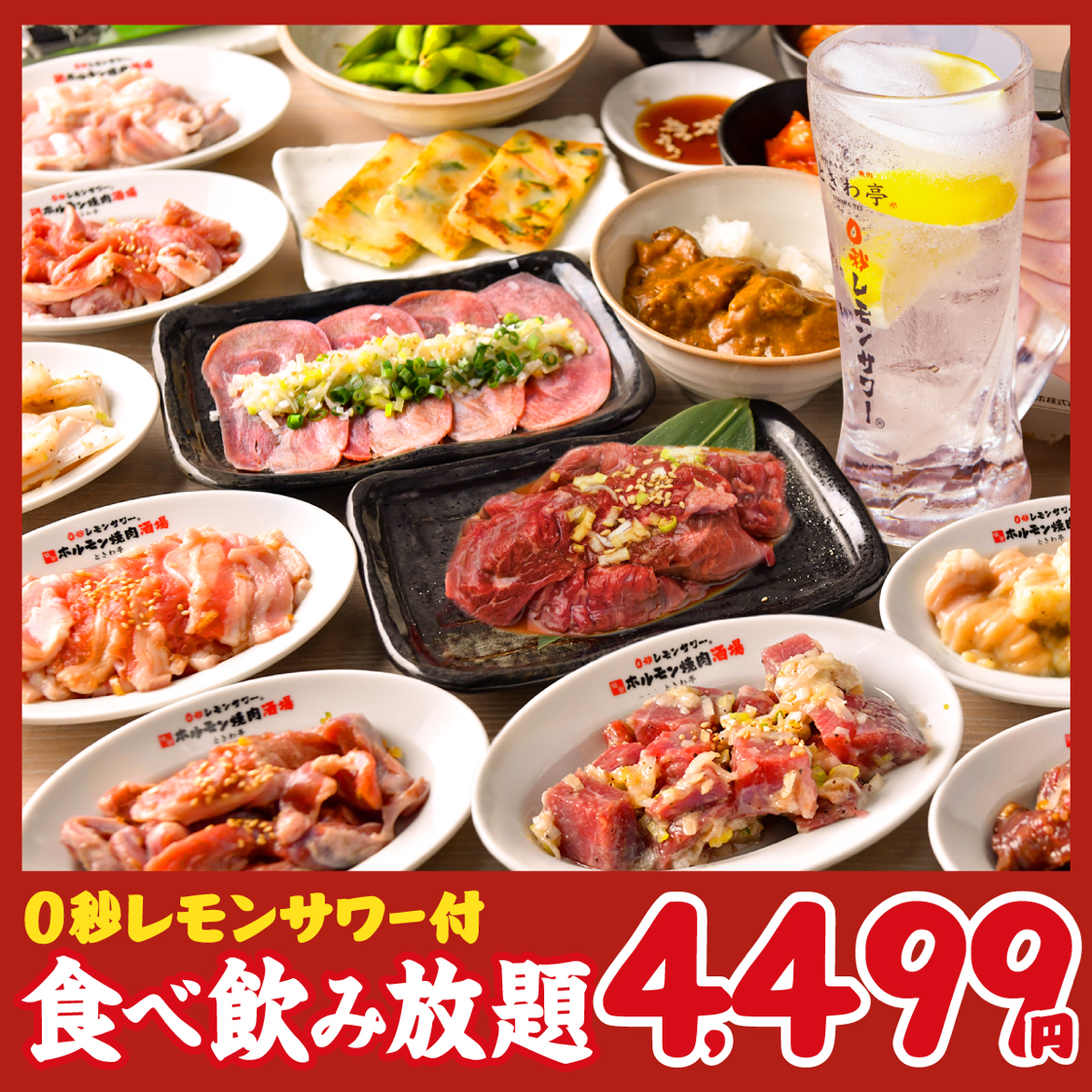焼肉といえばやっぱりカルビ!旨とろ炙りカルビやねぎ塩豚カルビなど絶品カルビが勢ぞろい!もちろんぜーんぶ食べ放題!さらに「名物 塩ホルモン」や人気サイドメニューも食べ放題できちゃう大満足の鬼コスパ!もちろん「0秒レモンサワー飲み放題」付き